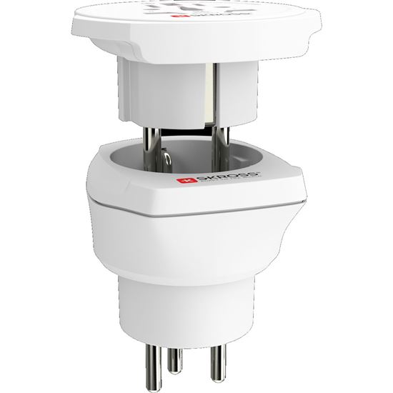 Adaptér SKROSS Combo World to Israel umožňuje bezpečné použitie zariadení v izraelských zásuvkách. Pripojí uzemnené aj neuzemnené vidlice prívodných káblov, bez problémov zapojíte všetko od notebookov, telefónov až po fény. A vďaka univerzálnemu nástavcu nezáleží úplne na tom, z ktorej krajiny pripájaný spotrebič je.