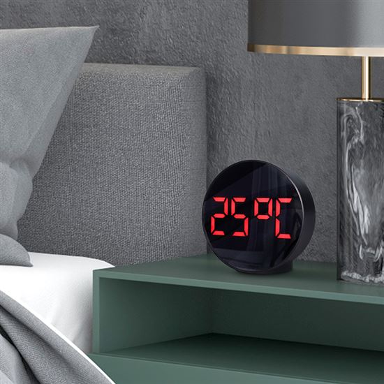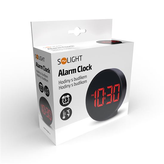 Digitálne hodiny s LED displejom a teplomerom.Tyto moderné hodiny zobrazují čas a teplotu na LED displeji s možnosťou prepínania medzi jednotkami °C/°F. Má tri úrovne jasu a nočný režim, ktorý automaticky znižuje jas počas nastaveného časového intervalu. Jednoduché nastavenie budíka s možnosťou jeho vypnutia zabezpečuje pohodlné používanie. Napája sa 3× AAA batériami alebo prostredníctvom DC 5V.