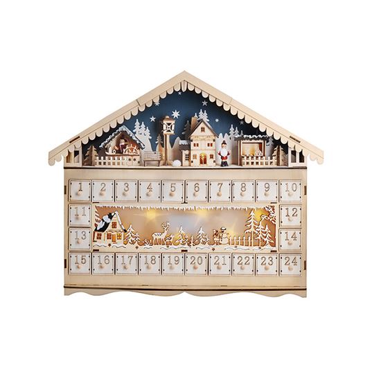 LED adventný kalendár v tvare horskej chaty pre čarovnú vianočnú atmosféru
