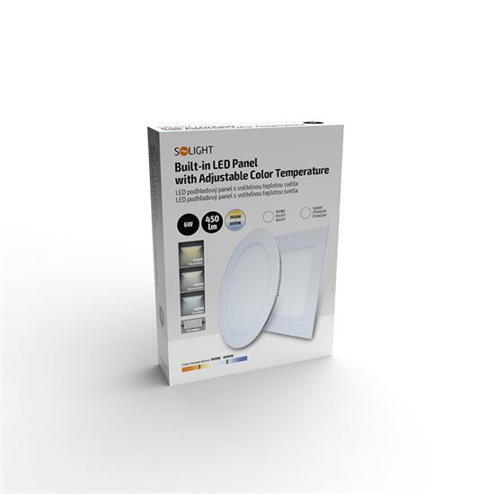- panel disponuje špeciálnym LED zdrojom s prepínačom, ktorý umožňuje nastavenie teploty svetla (chromatickosti) 3000K, 4000K alebo 6000K