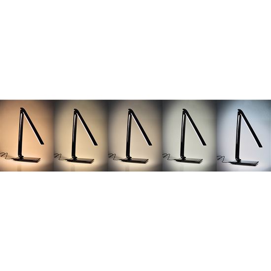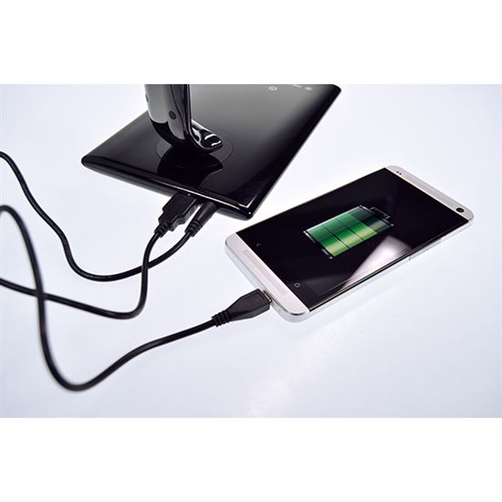 Lampička ponúka užitočný svetelný tok až 700 lm v uhle 120°, čo zaručuje dostatočné osvetlenie celej pracovnej plochy. Protišmyková základňa s dotykovým vypínačom zabezpečuje stabilitu a jednoduché ovládanie. Praktická USB napájacia zdierka umožňuje nabíjanie telefónu priamo z lampičky, USB kábel je súčasťou balenia. Elegantný čierny lesk a kompaktné rozmery cca 420 x 360 x 125 mm skvele doplnia každý interiér. Lampička je vyrobená z odolného ABS materiálu, napájanie je riešené cez AC 220–240 V a dĺžka napájacieho kábla je 140 cm.