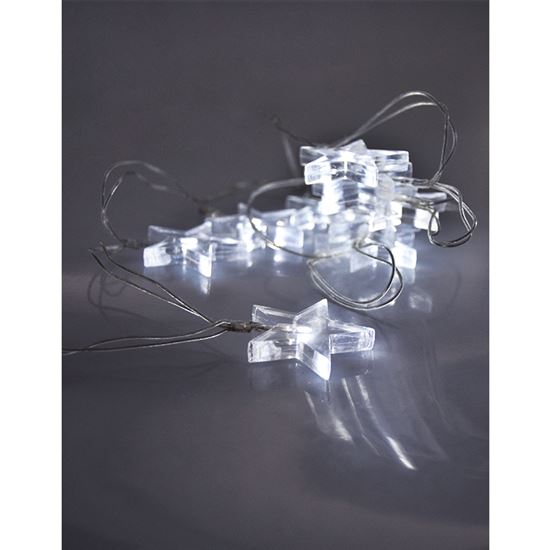 Tento svetelný reťaz s motívom hviezd je ideálnou voľbou na vytvorenie útulnej a slávnostnej atmosféry v interiéri. Desať bielych LED diód rozmiestnených v pravidelných rozostupoch 15 cm na transparentnom kábli zabezpečuje jemné a rovnomerné osvetlenie, ktoré vynikne na oknách, stenách aj v detských izbách. Vďaka dĺžke osvetlenej časti 1,5 m a prívodnému káblu s dĺžkou 1 m je možné reťaz jednoducho umiestniť presne tam, kde potrebujete, bez obmedzenia zásuvkou.