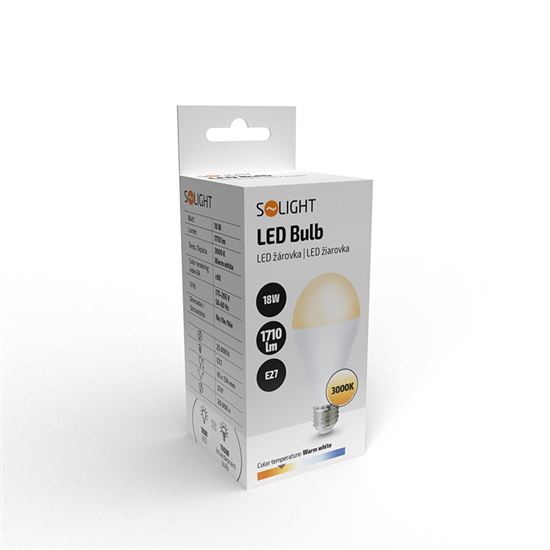 Solight LED žiarovka, klasický tvar, 18W, E27, 3000K, 270°, 1710lmSolight LED žiarovka, klasický tvar, 18W, E27, 3000K, 270°, 1710lm
