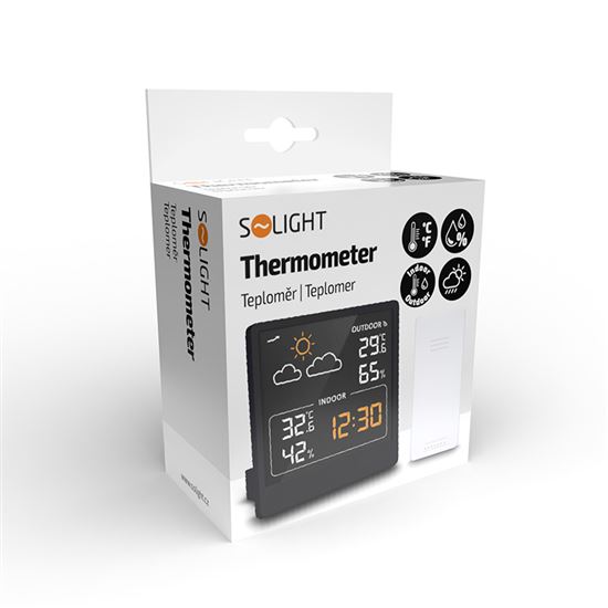 Meria vnútornú teplotu od -9,9 °C do +50 °C a vonkajšiu teplotu od -40 °C do +70 °C. Meranie vlhkosti (20 % až 95 %) pre vnútorné a vonkajšie prostredie. Ukladanie maximálnych a minimálnych hodnôt teploty a vlhkosti, zobrazenie trendu zmeny tlaku a predpoveď počasia na základe zmien tlaku. Možnosť výberu jednotiek teploty °C/°F. Napájanie: hlavná jednotka 2× batérie AAA alebo DC5V/2A, snímač 2× batérie AAA (nie sú súčasťou dodávky). Farba: čierna.