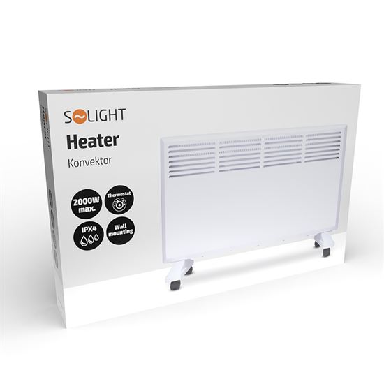 Výkonný 2000W ohrievač s dvoma úrovňami výkonu (1000W / 2000W) a hliníkovým vykurovacím telesom pre účinné vykurovanie. Termostat umožňuje udržiavať stálu teplotu v miestnosti. Ochrana proti prehriatiu zaisťuje bezpečnosť. Môže byť voľne stojaci na kolieskach alebo namontovaný na stenu. Stupeň krytia IPX4 chráni pred striekajúcou vodou, čo umožňuje použitie vo vlhkých priestoroch. Napájanie 220-240 V/50 Hz.
