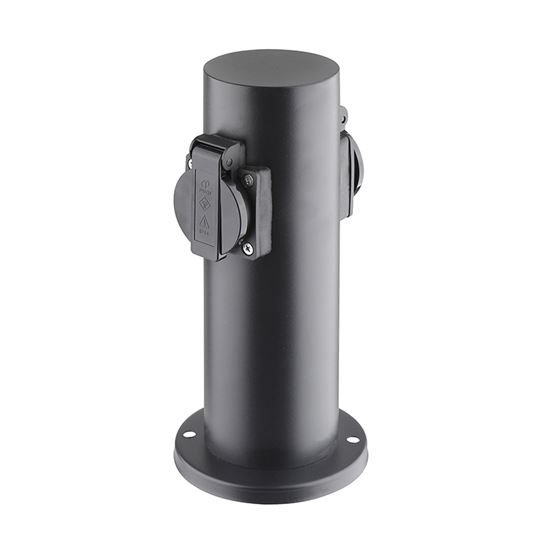 Dve zásuvky s detskými poistkami sú chránené samouzatvárateľnými krytkami, ktoré bránia vniknutiu vlhkosti a nečistôt. Vďaka krytiu IP44 je stĺpik vhodný aj na použitie za dažďa alebo vo vlhšom prostredí. Zásuvky zvládnu záťaž až 3680 W (16 A pri 230V~), čo je ideálne pre vonkajšie osvetlenie, záhradnú techniku aj bežné spotrebiče. Vhodný pre domy, pergoly aj firemné areály.