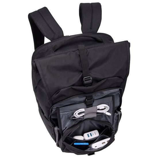 • Štýlový rolovací design zväčšuje kapacitu batohu z 28 na 33 litrov.