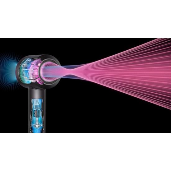 Malý, ale výkonný motor Dyson Hyperdymium™ generuje až 110 000 otáček za minutu, což vytváří silný a precizně řízený proud vzduchu pro mimořádně rychlé a efektivní vysoušení vlasů. Díky optimalizovanému proudění vzduchu jsou vlasy usušeny rovnoměrně, zůstávají lesklé a hladké, aniž by docházelo k jejich poškození nebo nadměrnému vysoušení. Tento motor poskytuje vysoký výkon potřebný pro rychlý styling i maximální kontrolu nad výsledkem.