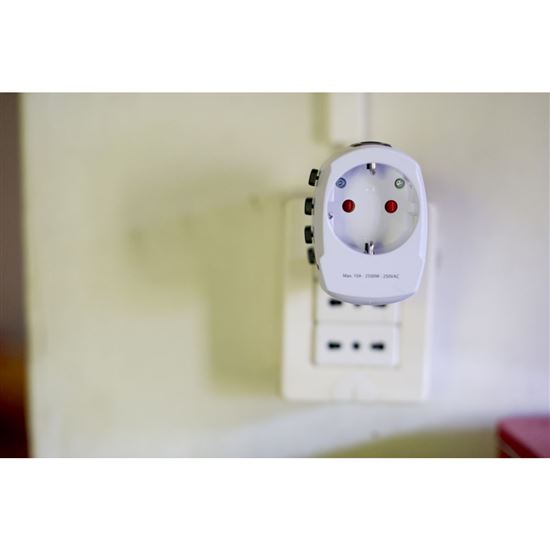 Navrhnutý vo Švajčiarsku s dôrazom na bezpečnosť. Zaisťuje ľahké a bezpečné použitie po celom svete. Prepoja európske prívodné káble so zásuvkami v Austrálii, Číne, Veľkej Británii, USA, Švajčiarsku, Taliansku a Brazílii. Vymeniteľná poistka poskytuje dodatočnú ochranu.
