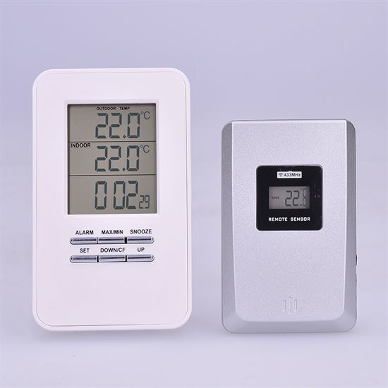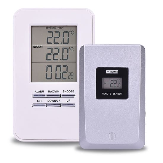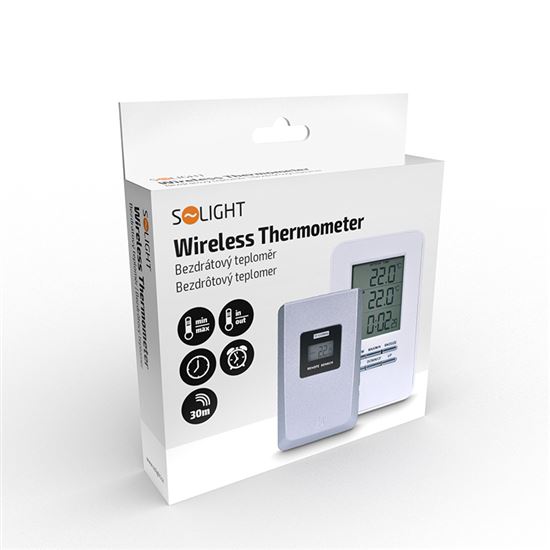 Digitálny teplomerDigitálny teplomer na meranie vnútornej teploty (-9 °C až +50 °C) a vonkajšej teploty (-50 °C až +70 °C). Pamäť minimálnych a maximálnych teplôt na monitorovanie zmien. Súčasťou dodávky je 1 bezdrôtový snímač. Funkcia času a budíka na pohodlné používanie. Napájanie: hlavná jednotka 2x batérie AAA (nie sú súčasťou balenia), snímač 2x batérie AAA (nie sú súčasťou balenia). biela farba pre moderný vzhľad.