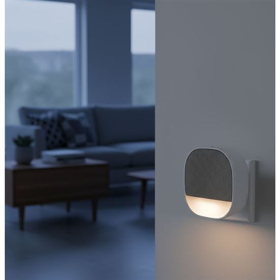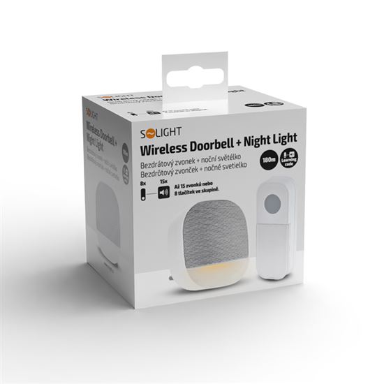 Dva v jednom – zvonček a nočné svetlo Tento model kombinuje funkciu klasického bezdrôtového zvončeka s decentným nočným osvetlením. Integrované svetielko svieti teplou bielou farbou, vďaka zaoblenému tvaru krytky neoslňuje a rovnomerne ožaruje okolitý priestor. O zapnutie sa stará súmrakový senzor, ktorý reaguje na pokles okolitého svetla. Nočný režim sa dá ľahko vypnúť priamo tlačidlom na zvončeku.