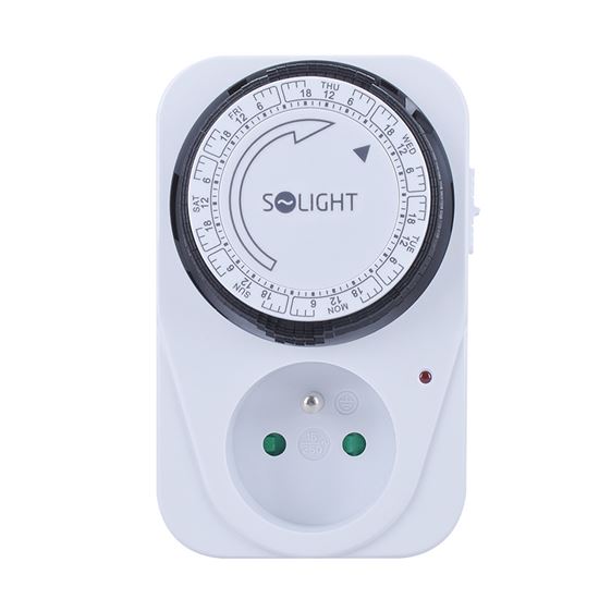 Časový spínač Mechanický týždenný časový spínač s minimálnym časovým úsekom 2 hodiny. Je vybavený mechanickým spínačom a detskou poistkou. Napájanie 230 V/16 A, 50 Hz. Vhodný na plánované ovládanie spotrebičov, vykurovania alebo osvetlenia.