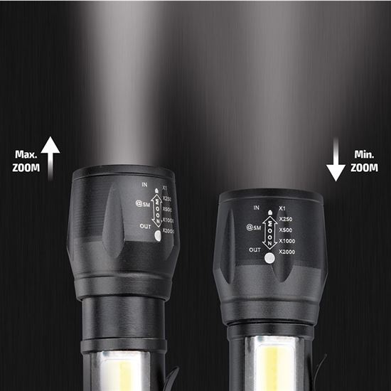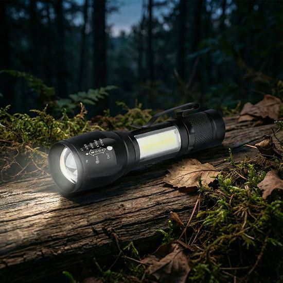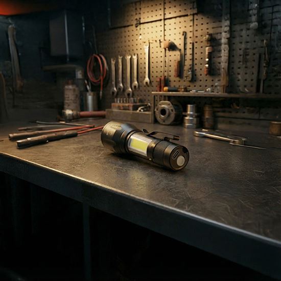 Toto kompaktné LED kovové svietidlo je ideálnym pomocníkom na každodenné použitie doma, v dielni aj na cestách. Hlavný zdroj svetla ponúka svetelný tok 150 lm, zatiaľ čo bočná LED COB poskytuje ďalších 60 lm, čo zabezpečuje dostatočné osvetlenie v rôznych situáciách. Vďaka možnosti regulácie svetelného kužeľa (zoom/fokus) ľahko prispôsobíte šírku svetelného lúča aktuálnym potrebám. Svietidlo ponúka tri režimy svietenia – 100 %, blikanie a 100 % COB, takže si môžete vybrať ten najvhodnejší podľa situácie.