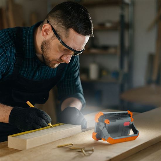 Tento kompaktný a výkonný LED reflektor je ideálnym pomocníkom na osvetlenie pracovných priestorov, garáží, dielní aj vonkajších aktivít. Vďaka svetelnému toku až 1000 lm a neutrálnej bielej farbe svetla (4000 K) poskytuje jasné a príjemné osvetlenie, ktoré neunavuje oči. Reflektor je vybavený dvoma režimami svietenia (100 % a 50 %), takže si ľahko prispôsobíte intenzitu svetla podľa aktuálnych potrieb. Praktický hák na zavesenie a silný magnet zabudovaný v rukoväti umožňujú jednoduché uchytenie na rôzne miesta, čo oceníte pri práci aj kempovaní. Indikátor stavu batérie vás vždy informuje o zostávajúcej energii, takže budete mať prehľad o dobe svietenia.