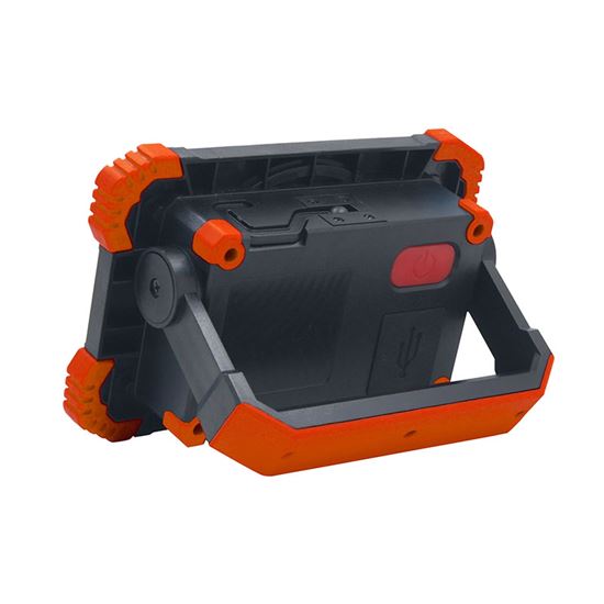 Reflektor je vybavený integrovanou Li-Ion batériou s kapacitou 4400 mAh, ktorá zabezpečí výdrž až 4 hodiny na jedno nabitie. Vďaka funkcii powerbanky môžete reflektor využiť aj ako zdroj energie na nabíjanie mobilných telefónov a ďalších USB zariadení (5 V, 1 A). Nabíjanie prebieha cez moderný USB-C konektor a trvá približne 4 hodiny. Odolné prevedenie z materiálov ABS a PC, krytie IP54 a prevádzková teplota od -10 °C do +50 °C zaručujú spoľahlivú prevádzku aj v náročnejších podmienkach. Kompaktné rozmery 14 x 10 x 4,5 cm a oranžovo-čierny dizajn robia z tohto reflektora praktického spoločníka na cesty aj do dielne.