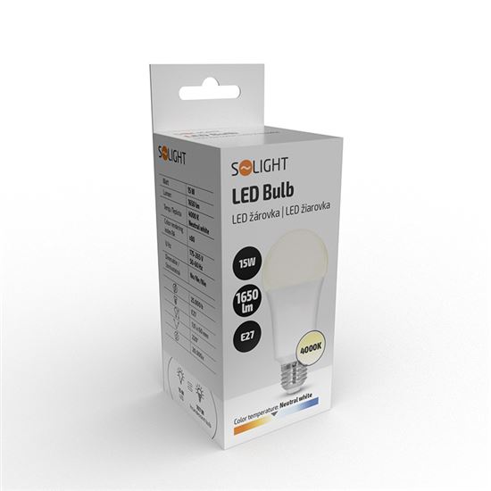 LED žiarovka E27 pre úsporné a efektívne osvetlenie LED žiarovka s klasickým tvarom a päticou E27 je ideálnou voľbou pre každodenné osvetlenie domácností, kancelárií aj komerčných priestorov. Vďaka spotrebe len 15 W poskytuje vysoký svetelný tok 1650 lm, čo zodpovedá tradičnej 107 W žiarovke, a pritom výrazne šetrí energiu. Neutrálne biele svetlo s teplotou chromatickosti 4000 K vytvára príjemnú atmosféru vhodnú na prácu aj relaxáciu. Široký uhol svietenia 220° zabezpečuje rovnomerné rozloženie svetla po celej miestnosti, zatiaľ čo index podania farieb Ra >80 garantuje verné zobrazenie farieb.