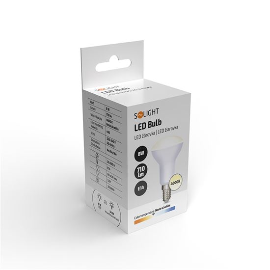 LED žiarovka reflektorová R50 pre efektívne osvetlenie interiéru LED žiarovka reflektorová R50 s päticou E14 je ideálnou voľbou pre tých, ktorí hľadajú úsporné a zároveň výkonné osvetlenie do domácnosti aj kancelárie. Vďaka spotrebe iba 8 W poskytuje svetelný tok 710 lm, čo zodpovedá klasickej 54 W žiarovke, a prináša tak výraznú úsporu energie bez kompromisov na svietivosti. Neutrálne biele svetlo s teplotou chromatickosti 4000 K vytvára príjemnú atmosféru vhodnú na každodenné činnosti, prácu aj relaxáciu. Široký uhol svietenia 120° zabezpečuje rovnomerné rozptýlenie svetla po celej miestnosti, zatiaľ čo okamžitý štart < 0,1 s umožňuje plný výkon ihneď po zapnutí.
