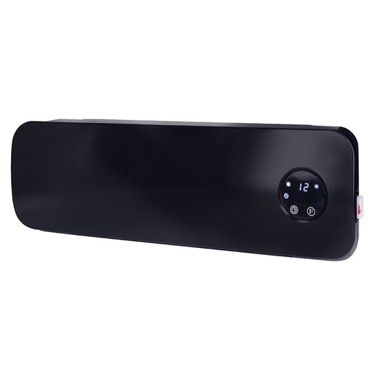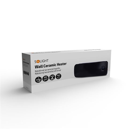 Keramické nástenné vykurovacie teleso, 2000 W, čierneKeramické nástenné vykurovacie teleso 2000 W s moderným dizajnom a displejom LED. Ponúka dva stupne výkonu (1000 W / 2000 W), ventilátor a časovač (týždenný + 24 h). Vďaka ochrane IP22 je odolný voči vlhkosti a vhodný do kúpeľní. Automatické vypnutie v prípade náhleho poklesu teploty chráni pred zbytočnou spotrebou. Diaľkové ovládanie pre maximálny komfort. Vhodný pre miestnosti s rozlohou do 20 m2. Farba: biela, napájanie 230 V/50 Hz.