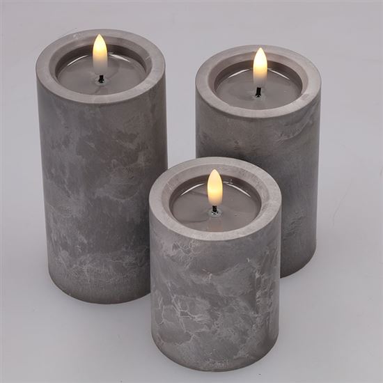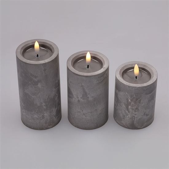 Vneste do svojho interiéru príjemné teplé svetlo s touto sadou troch LED sviečok, ktoré verne imitujú prirodzene blikajúci plameň. Elegantný dekor sivého mramoru dodáva sviečkam moderný vzhľad, ktorý sa ľahko zladí s akýmkoľvek štýlom zariadenia. Každá sviečka je vybavená samostatnou LED diódou s teplým bielym svetlom, ktoré navodzuje pocit pohody a pokoja bez rizika otvoreného ohňa. Vďaka plastovému prevedeniu sú sviečky bezpečné a vhodné aj do domácností s deťmi alebo domácimi miláčikmi.