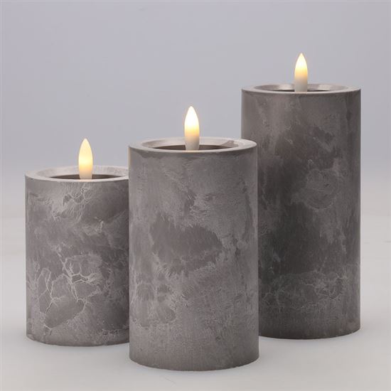 • sada LED sviečok s prirodzene blikajúcim plameňom a dekorom šedého mramoru