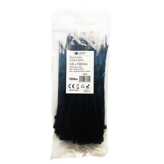 Solight viazacie nylonové pásky, 3,6 x 150mm, čierna, 100ks | SOLIGHT