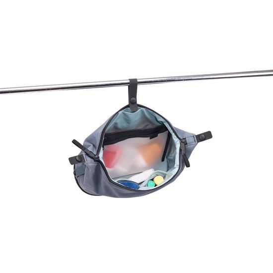 Až dorazíte do cieľa, pohodlne zaveste toaletnú tašku pomocou popruhu, ktorý sa dá také schovať, keď sa nepoužíva.